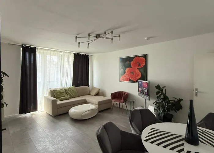 El alojamiento no solo ofrece servicio de tetera/cafetera, sino también una cocina completa con un hervidor eléctrico, una nevera y cristalería. La estación de metro más cercana es Richard-Wagner-Platz, a unos metros de este apartamento.